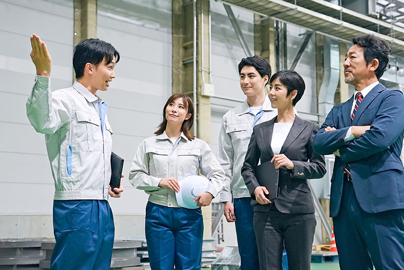 当日の作業内容や安全確認を共有し、現場作業をスタートします。